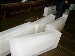 工业冰块和食用冰所使用的水质以及生产环境的卫生要求不一样。一般食用冰都是专业的食用制冰机制作,形状是3厘米见方小块的,制冰机大小同家用冰箱差不多,而工业用冰制成一般是1米长半米宽0.3米厚大块。所以形状不规则的冰块一般不是食用冰。公司日产冰块八百余吨,自有一万吨大型冷库,可满足客户旺季用冰的需求。